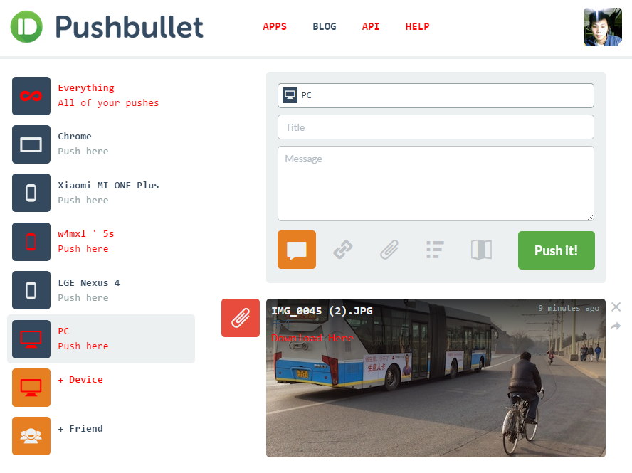 ps.因为GFW的存在,想要流畅并优雅的使用 Pushbullet,常常还得走VPN